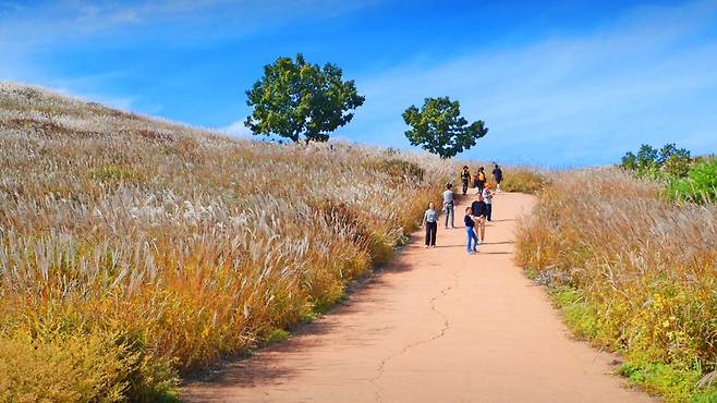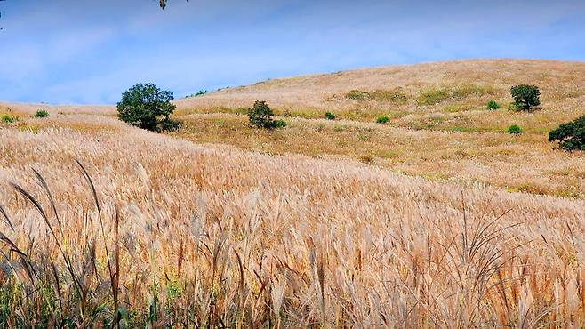 정상 주차장에서 불과 10분 정도만 오르면 끝없이 펼쳐진 억새 군락지가 방문객을 맞이합니다.