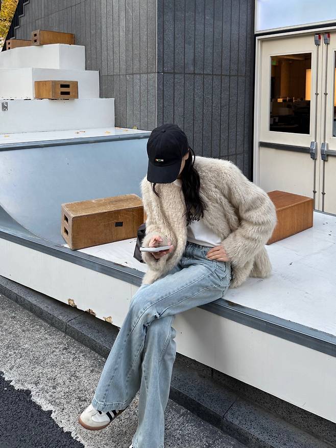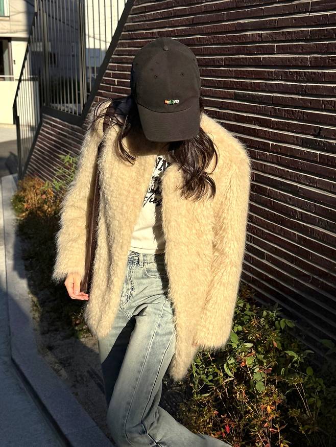 캐주얼한 데님 팬츠나 풍성한 퍼 재킷 같은 의상에도 웨이브가 주는 여성스러운 무드가 더해져서, 전체적으로 사랑스럽고 따뜻한 느낌을 완성했답니다.