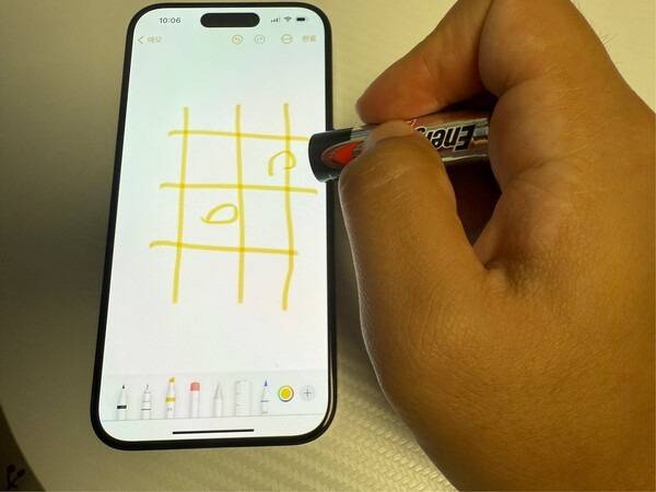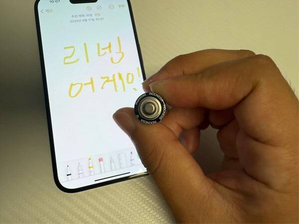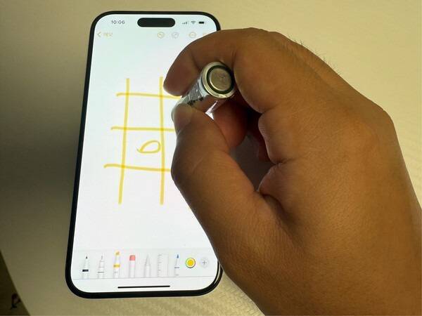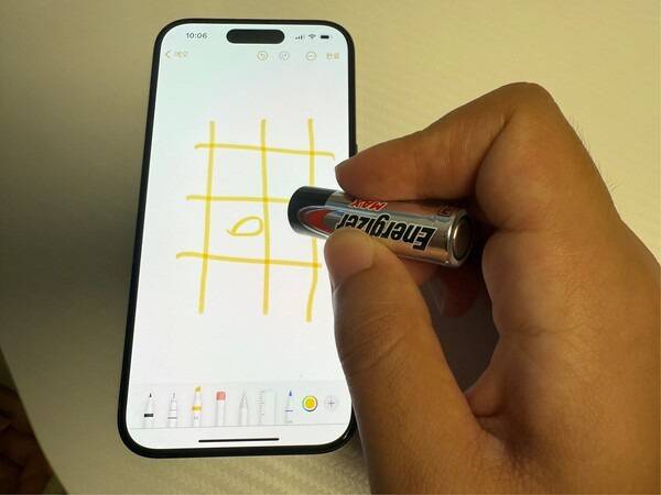 스마트폰 화면 위에 건전지 끝부분을 톡 대고 2~3초간 대기