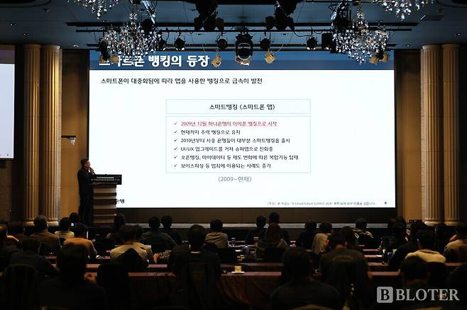 현재 스마트폰을 이용한 디지털뱅킹은 단순한 이체 도구를 넘어 '슈퍼앱'으로 진화했다. 이 부서장은 "하나의 앱에서 은행, 카드, 증권, 보험 등 그룹사의 모든 서비스를 이용할 수 있는 유니버셜 뱅킹이 세계적인 트렌드"라고 설명했다.