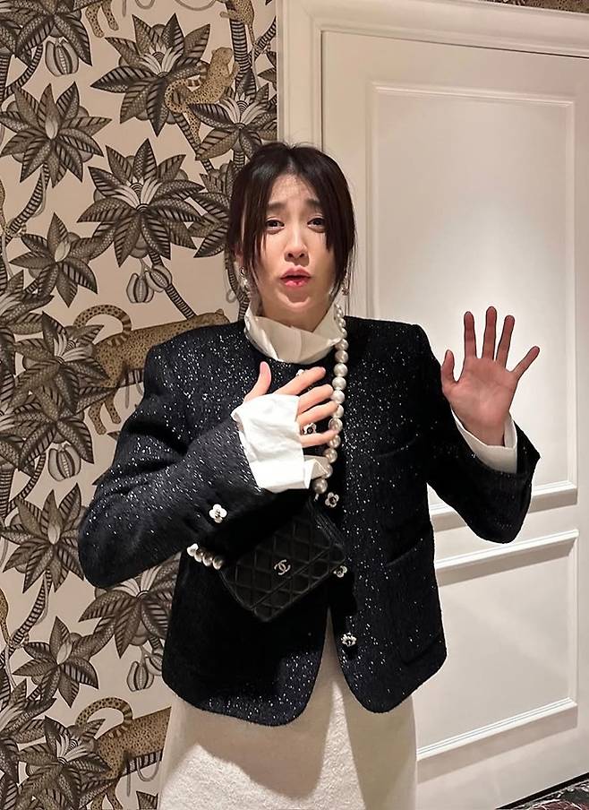 배우 박하선이 트위드 슈트 하객룩으로 멋과 품격을 다 잡았다.
