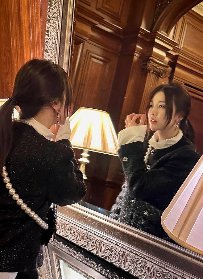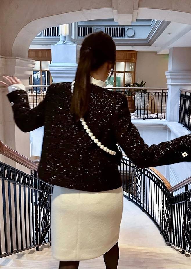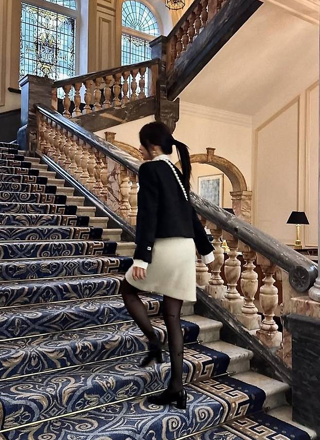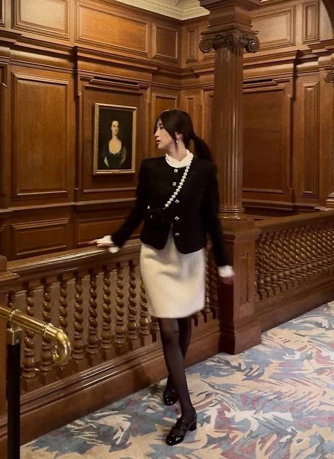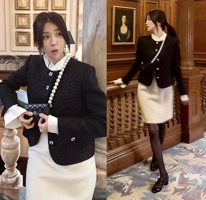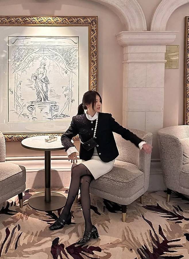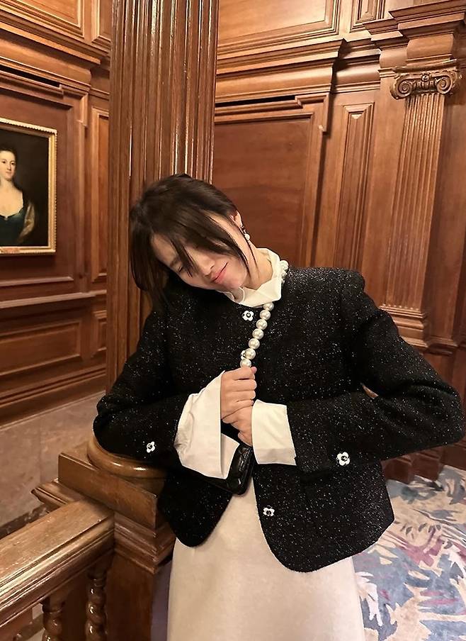공개한 사진에서 박하선은 화이트 블라우스와 원피스 위에 블랙 트위드 재킷을 걸친 블랙&화이트 슈트 차림으로 깔끔하면서 품격있는 하객룩을 완성했다.