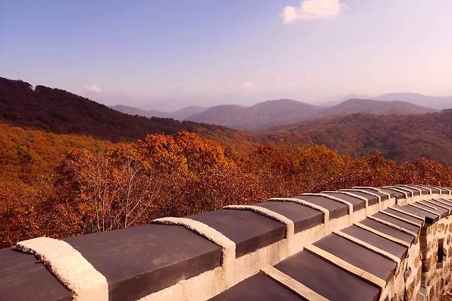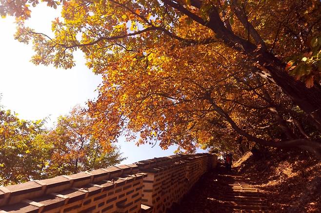 특히 북문에서 서문으로 이어지는 길이 가장 단풍이 아름다운 곳이라 생각하며, 가장 경사가 가파른 구간이기 때문에 다이어트 효과엔 직빵이라할 수 있어요. 계속해서 이어지는 성곽길과 어우러진 단풍의 조화는 가히 환상적이라 할 수 있습니다.