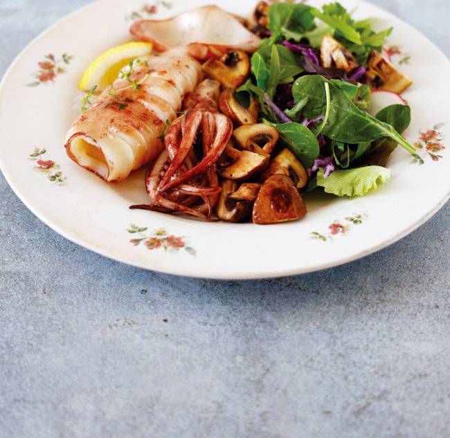 오징어는 손쉽게 구할 수 있는 해산물. 장 보러 갔을 때 생물 오징어를 발견한다면 꼭 버터구이를 해서 먹어볼 것. 육질이 부드러운 생물 오징어는 특별한 양념 없이 버터에만 구워도 고소하고 맛있다. 깔끔하게 손질한 오징어에 허브를 다져 뿌리고 잠시 마리네이드했다가 버터를 올려 노릇하게 구워낸 뒤 샐러드 채소를 곁들이면 한 끼 식사로 근사한 샐러드가 완성된다.