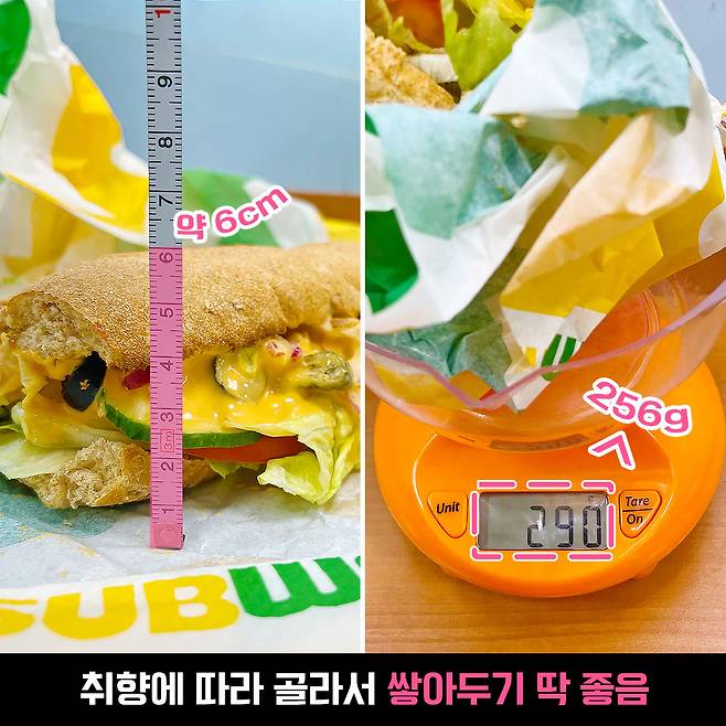 써브웨이는 빵의 종류에 따라, 또 야채의 커스텀에 따라 두께와 무게가 천차만별이니 참고만 해주세요!