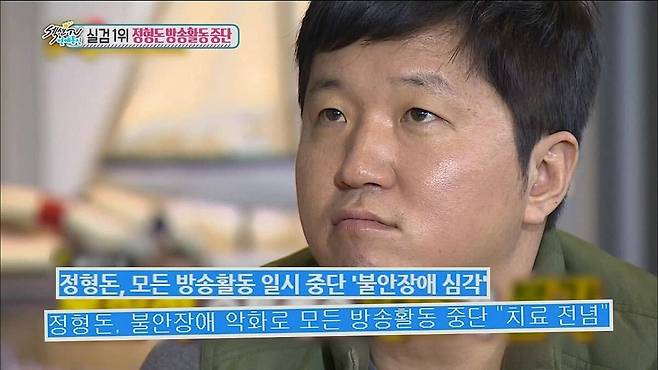 하지만 한창 주가를 올리던 정형돈은 두 차례 불안장애로 모든 방송활동을 중단한 바 있습니다.