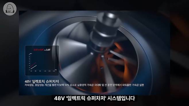 제네시스의 일렉트릭 슈퍼차저는 말 그대로 이 슈퍼차저를 전기 모터로 작동시켜 동력 손실 없이 중저속의 낮은 rpm에서도 과급 효과를 누릴 수 있도록 해주는 장치입니다. 여기에 기존 3.5L 트윈 터보 용량을 확장해 육중해진 차체의 끌기에 충분한 기존 V8 5.0L의 맞먹는 성능을 제공하면서 자연흡기 못지않은 매끄러움으로 호평 받았죠.