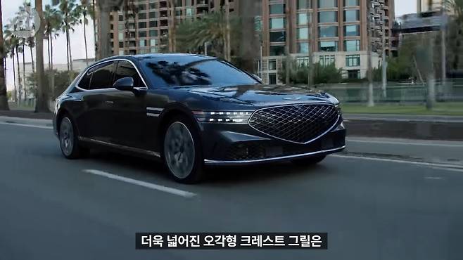 더욱 넓어진 오각형 크레스트 그릴은 속의 그물망을 이중으로 처리해 하단 범퍼와의 연결성을 확보함과 동시에 꽉 찬 느낌을 전달했습니다. 컨셉트카에서나 보던 가느다란 두 줄의 램프는 단 한 세대만에 신형 제네시스의 상징으로 확고하게 자리잡았고, 이에 대한 시장의 반응도 긍정적이죠.