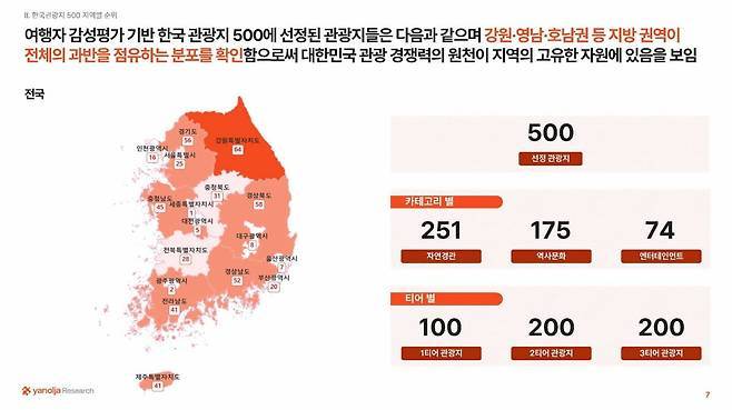 야놀자리서치는 이 모델을 매년 업데이트해 한국관광 500 순위를 지속 발표할 계획이며, 지자체와의 협업을 통해 지역 관광 활성화에도 활용할 예정입니다.