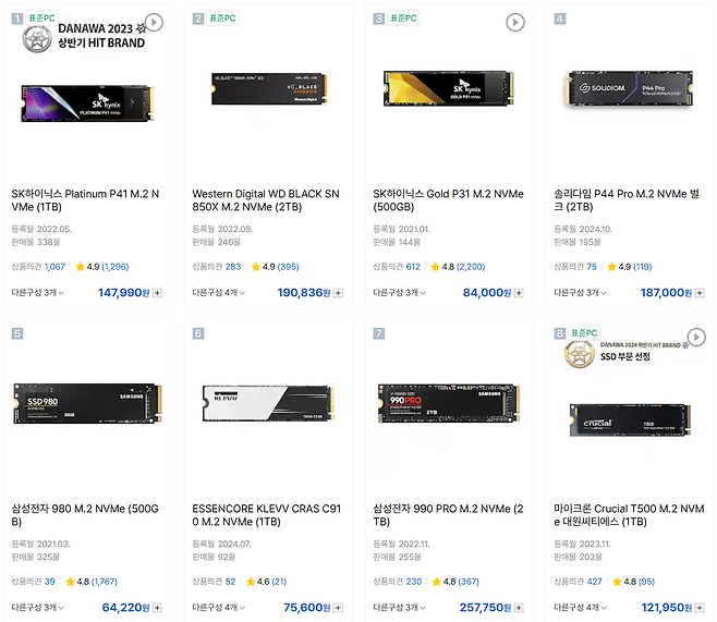 비싸다. 더 정확히 말하자면 2023년과 2024년 상반기까지는 지금보다 더 많이 비쌌었다. 아무리 전송 속도가 빠르다고 해도 가격이 엄청 비싸면 사람들이 섣불리 구매할 엄두가 안 나는 법. 1TB 용량 기준으로 30만 원에 달하는 가격은 소비자들을 경악하게 만들었다.