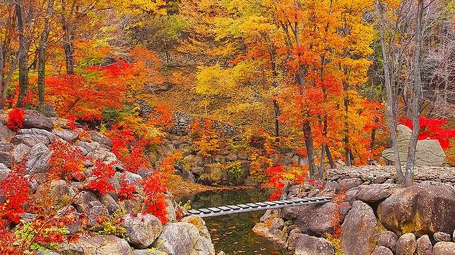 가을이 절정에 이른 11월 초, 지리산 깊은 골짜기에서 믿기 힘든 풍경이 펼쳐진다. 형형색색 단풍 사이로 솟아오른 1,500개의 돌탑.