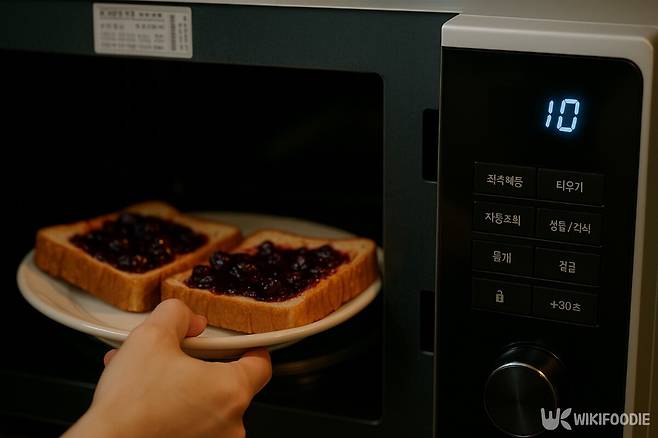 크림치즈는 냉장고에서 바로 꺼내기보다 실온에 5분 두면 바르기 쉽다. 블루베리잼은 당도가 낮은 제품을 쓰면 단맛이 과하지 않아 조화가 좋다. 식빵은 너무 두꺼운 것보다 일반 두께가 적당하다. 전자레인지에 너무 오래 돌리면 식감이 퍼질 수 있어 10초만 딱 맞춰 돌리는 게 좋다.