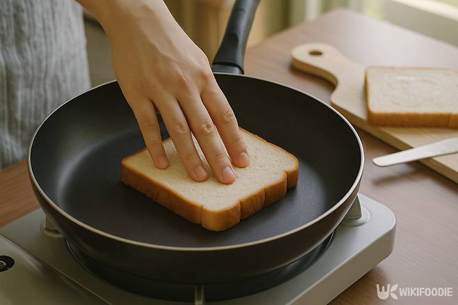 1. 토스트기 또는 프라이팬에 식빵을 바삭하게 굽는다