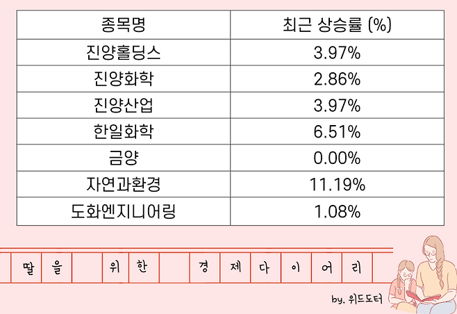관련주에 미치는 영향 (최근 상승률)