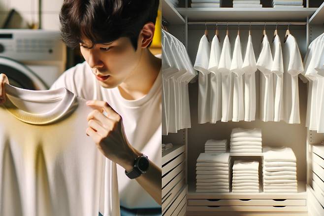 특히 뒷목 부근은 내눈엔 잘 안보이지만 다른 사람에겐 잘 보이는 위치라 더욱 신경써야하는데요. 오늘은 이런 지저분하게 변색된 티셔츠를 새하얗게 만드는 방법을 알려드리겠습니다.