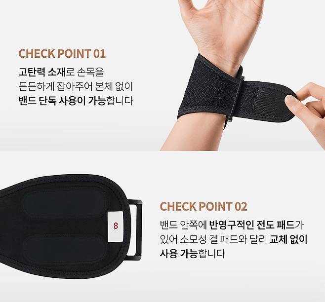 오아 바디스팟 W은 손목 전용으로 사용할 수 있는 저주파 마사지기다. 스마트폰, 키보드를 많이 사용하거나 운동, 가사 등으로 손목이 약해진 현대인에게 어울리는 제품. 다른 신체 부위에는 사용할 수 없다는 한계가 있지만, 떨어지기 쉬운 젤 패드 대신 단단하게 고정되는 벨크로 방식으로 작동 중에도 업무 및 일상생활이 가능하기 때문에 손목 전용으로 사용할 목적이라면 더욱 유용하다. 벨크로 안쪽에는 소모성 젤 패드 대신 반영구적 사용이 가능한 전도 패드가 내장돼 있어 교체 없이 사용 가능하다.
