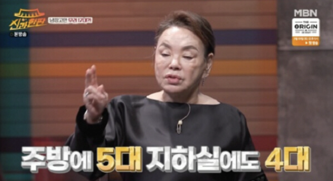 김수미의 식탁 역시 화려함 그 자체였다. 그녀의 시그니처 간장게장은 물론, 1kg에 65만 원 상당의 자연산 송이버섯, 보리굴비, 전복 조림, 새우장, 그리고 그녀가 직접 담근 6종 김치와 4색 나물이 차려져 손님들을 놀라게 했다. 특히 “김치냉장고, 업소용 냉장고 등 총 17대의 냉장고를 보유하고 있다”는 김수미의 말에 출연진은 입을 다물지 못하며 연예계 요리 대모의 남다른 클래스를 실감했다.