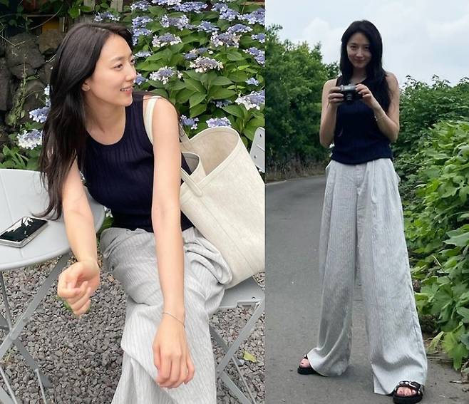 또 표예진은 그레이 와이드 팬츠를 매치해 편안함과 활동성을 강조했습니다.