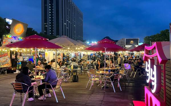 곳곳에 포토존과 푸드트럭에서 구입한 음식을 먹을 수 있는 좌석이 설치되어 있어 편리함을 더했는데요. 밤이되면 조형물에 조명이 켜져 낭만적인 서울 도심 속 먹거리를 즐길 수 있습니다.