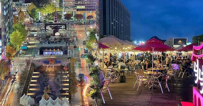 곳곳에 포토존과 푸드트럭에서 구입한 음식을 먹을 수 있는 좌석이 설치되어 있어 편리함을 더했는데요. 밤이되면 조형물에 조명이 켜져 낭만적인 서울 도심 속 먹거리를 즐길 수 있습니다.