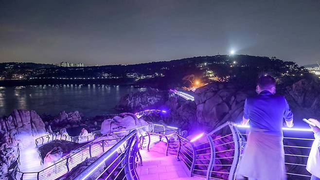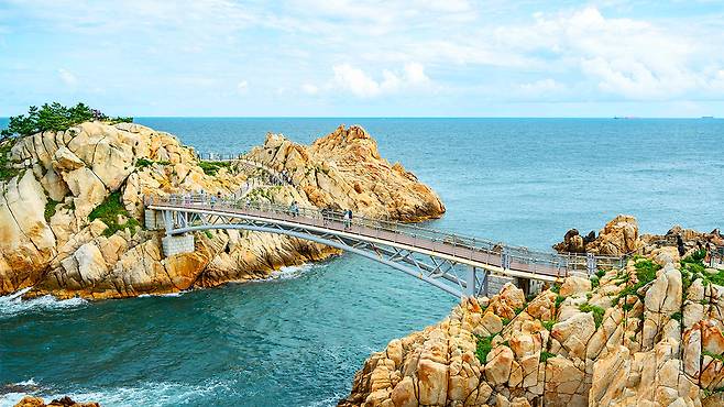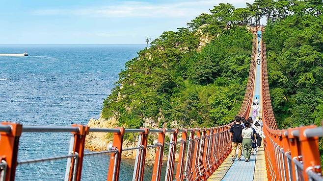 대왕암공원을 더욱 특별하게 만드는 건 단연 출렁다리다. ‘햇개비’와 ‘수루방’을 잇는 이 다리는 길이 303m, 높이 42.55m로, 중간 지지대 없이 바다 위를 통째로 가로지른다.