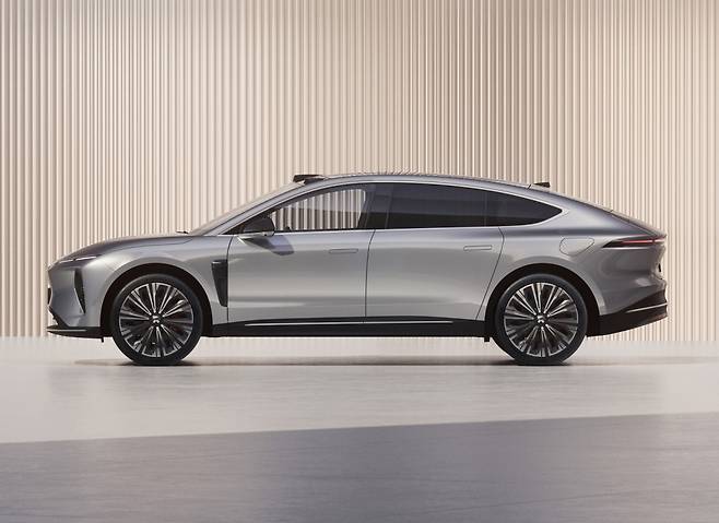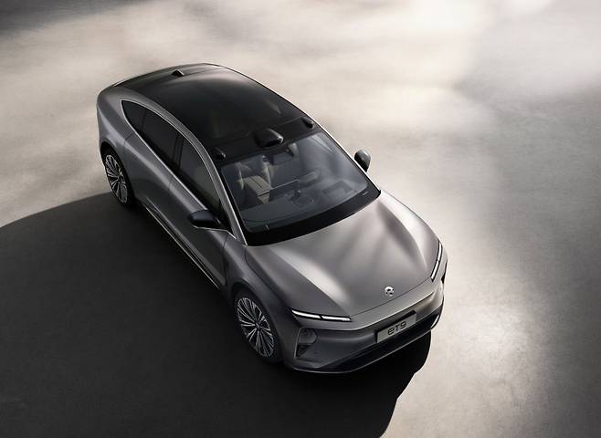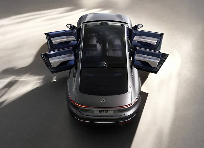 디자인에서 니오 가족임을 알 수 있다. 얇은 램프와 그릴 없이 매끈하게 마감한 전면부, 세단과 쿠페 사이에 자리하는 측면 실루엣, 가로줄로 표현된 리어램프까지 전반적으로 깔끔한 이미지를 보여준다.