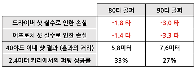 그런데, 과연 80타 골퍼와 90타 골퍼는 어떤 부분에서 차이가 날까요?