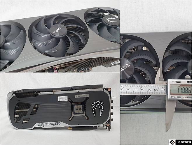 110mm의 더 넓고 높아진 대형 3팬이 장착되어 더욱 원활한 공기 흐름이 구현되었으며, 팬 높이가 높아지면서 각각의 팬이 회전할때 차가운 공기를 하단으로 더 많이 밀어내기 때문에, 더욱 효과적인 발열 제어가 가능해진 모습이다.