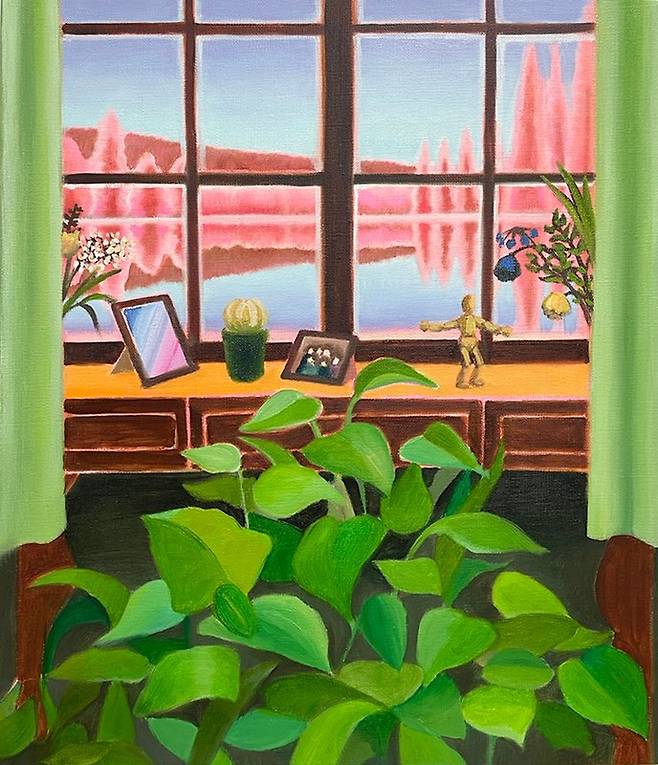 파란 지붕 위로 초록색 거대한 나뭇잎들이 돋아있습니다. 얼핏 보면 초현실적인 풍경 같기도 하지만, 세밀하게 묘사된 나뭇잎들이 실제 식물인 듯 착각을 하게 만듭니다. 집 안을 식물들로 채워 플랜테리어를 완성하셨다면, 그림마저 식물로 가득 찬 이 그림을 추천드립니다.