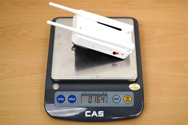 본체 크기는 안테나를 제외하고 66 x 117 x 70mm에 무게는 166g이지만 실제로는 그보다 좀더 가벼워 전원 콘센트나 멀티 탭에 달려있어도 부담되는 정도는 아니다. 다만 어댑터 일체형 디자인으로 본체에 전원 플러그가 고정되어 있기 때문에 설치 위치에 따라 인접한 콘센트를 사용하지 못할 수도 있다.