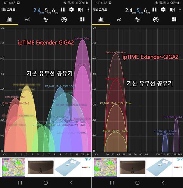 Extender-GIGA2는 무선 신호 품질이 현저히 떨어지거나 끊기는 음영 지역(데드 존)을 제거하는데도 유용하지만 무선 신호가 약한 위치에 추가하여 신호 강도를 높여 쾌적한 인터넷 사용을 하는데도 도움을 준다. 다양한 무선 네트워크망이 혼잡하게 구성된 2.4GHz 대역 뿐만 아니라 5GHz 대역에서도 보드나라 사무실에 설치된 기본 유무선 공유기보다 강한 신호를 보여준다.