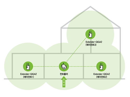 Extender-GIGA2가 지원하는 이지메시(Easy Mesh) 기술을 사용하여 넓은 공간에서 인터넷에 연결된 유무선 공유기를 중심으로 여러 대의 Extender-GIGA2를 설치하여 무선 네트워크 범위를 확장시킬 수 있다. 이 제품은 라이트 메시(Lite Mesh) 제품으로 유무선 에이전트 기능을 지원한다.