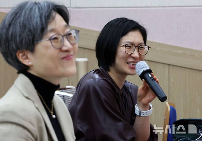 [서울=뉴시스] 홍효식 기자 = 하은진(오른쪽) 서울대병원 중환자의학과 교수가 20일 서울 종로구 서울대학교 의과대학 융합관 양윤선홀에서 서울의대-서울대병원 임상의료정책연구회 주최로 열린 '더 나은 의료체계를 위해' 심포지엄에서 발제를 경청한 뒤 질문하고 있다. 왼쪽은 강희경 서울대병원 소아청소년과 교수.