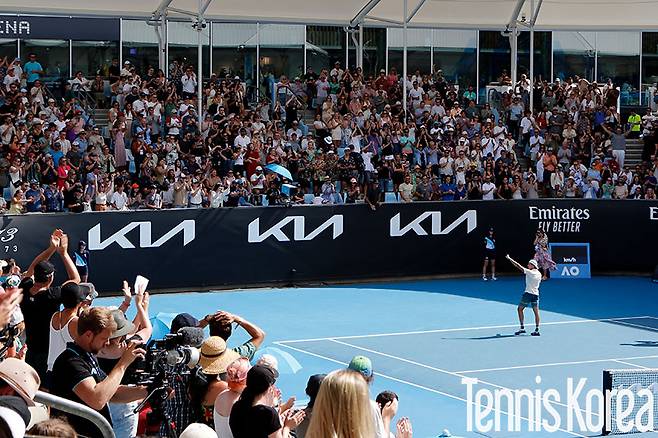 [멜버른=박성진 기자] 아르튀르 카조(프랑스, 122위) 열풍이 호주를 강타하고 있다. 2회전에서 이번 대회 우승 후보 중 하나였던 홀게르 루네(덴마크, 8위)를 잡아내는 대이변을 썼던 카조가 3회전에서는 스트레이트 승리를 따내며 16강에 올랐다. 와일드카드 선수의 대반전 스토리다.