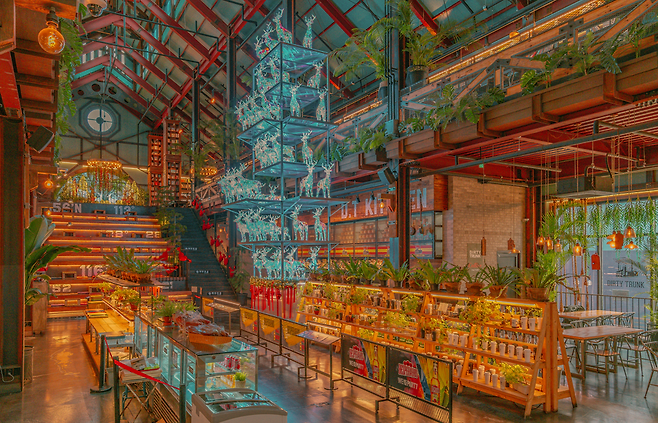 파주 더티드렁크 – 트렌디한 건축미와 루돌프 장식이 어우러진 감각적 문화 공간