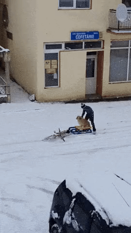 잠시후 무언가를 주섬주섬 연결하더니 썰매 위에 반려견을 태우는 것이 아니겠습니까. 아이는 썰매에 반려견을 태운 뒤 자전거에 올라타더니 그대로 앞으로 달려나간 것.