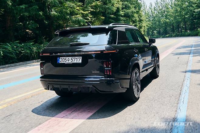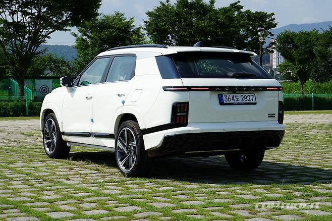 액티언 하이브리드의 외관은 내연기관 모델과 동일하다. 리어쪽 하이브리드 뱃지만이 차별화된 부분이다. 지난 2월부터 도입된 파노라마 선루프는 120만원의 옵션 사항이다. 시승차는 3695만원의 기본 가격에 457만원 옵션이 추가된 4152만원이다. 유사 사양 토레스 대비 42만원 비싸다.