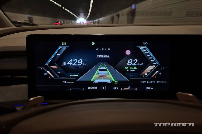 배터리가 거의 소진된 상태에서는 체감 출력이 전기모터 최고출력의 절반 수준으로 떨어진다. 배터리팩을 키우거나 충전 시점을 앞당기면 만족도가 높겠다. 테스트 주행에서 간헐적 연비 측정은 큰 의미가 없지만, 평균 11~12km/ℓ 수준을 기록했다. 연비 부분은 추후 재확인이 필요하다.