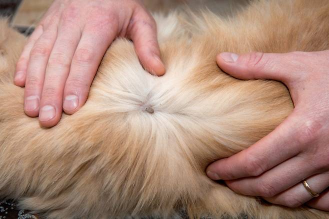이때, 검은색이나 적갈색을 띠는 커다란 진드기가 보인다면 손으로 절대 떼면 안 되는데요. 진드기가 숙주의 피를 잘 빨아들이기 위해, 입 주변에 접착제와 같은 물질을 분비해 피부에 찰싹 붙어있기 때문입니다.