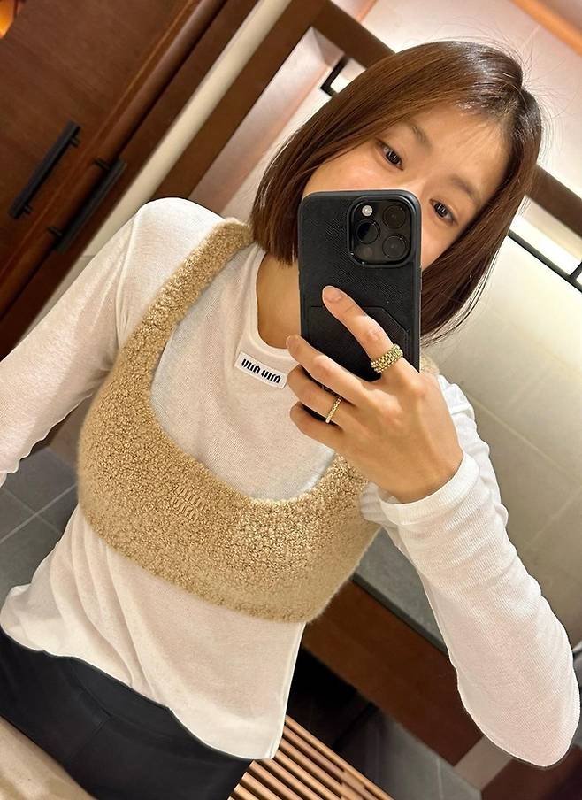 공개한 사진과 영상에서 이시영은 포근한 페이크 퍼 재킷과 함께 화이트 티셔츠 밖으로 복슬복슬한 뷔스티에 탑을 레이어드한 센스있는 조합으로 힙한 홀리데이룩을 연출했다.