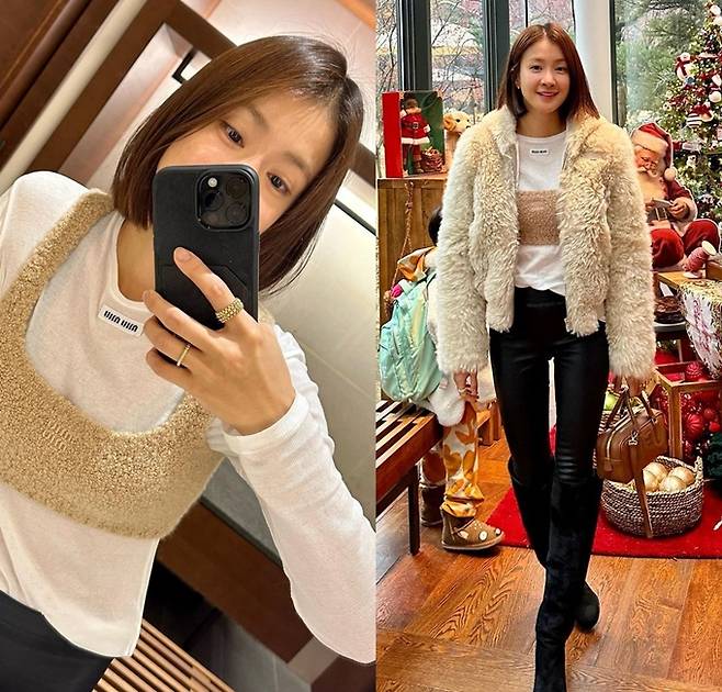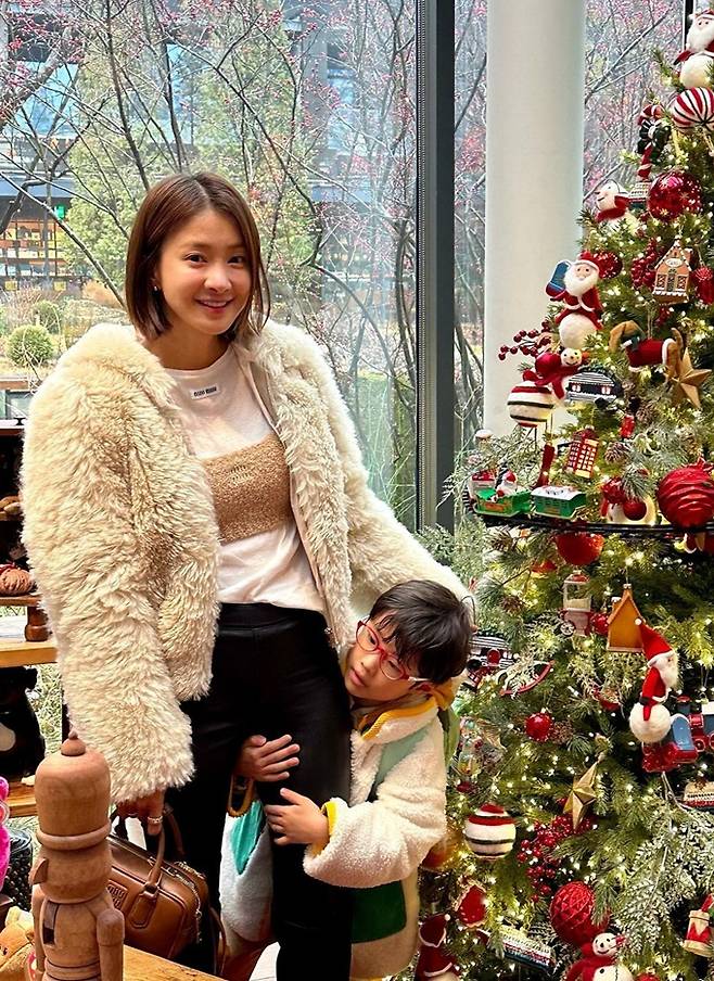 배우 이시영이 복슬복슬 포근한 매력의 페이크 퍼(Fake Fur) 홀리데이룩으로 아들과 함께 크리스마스 시즌을 한껏 즐겼다.