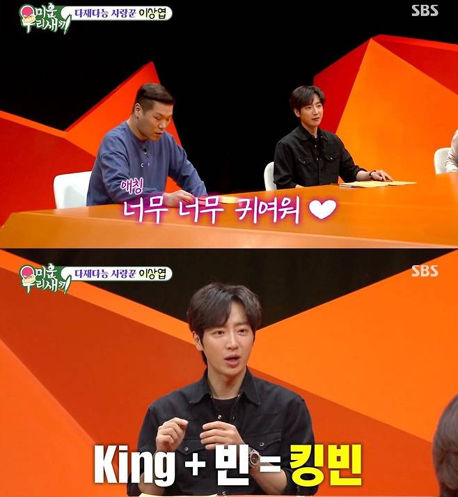 최근 이상엽은 "아내 애칭이 바뀌었다. 킹빈(KING+빈)이라고 부른다. 이름에 빈이 들어가는데 킹왕짱 빈이라 킹빈, 때로는 '킹 받게 하는 빈'이라는 뜻으로 킹빈"이라고 설명해 웃음을 안겼습니다.