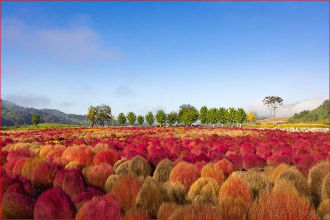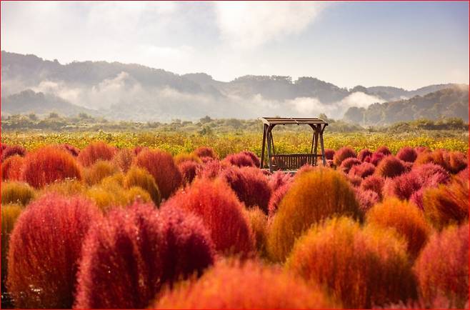 초록에서 붉은빛으로 변하는 2만 그루 댑싸리의 향연