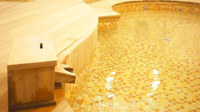 탕에 들어가는 순간 피부에 착 감기는 부드러운 감촉을 느낄 수 있으며, 유황 성분이 피부 미용과 만성 피로 해소에 큰 도움을 줍니다.