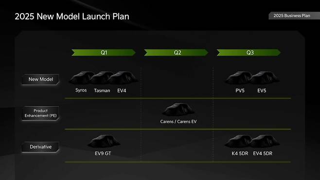 송호성 CEO는 "향상된 효율성을 갖춘 새로운 2.5L 터보 가솔린 엔진을 바탕으로 연료 효율이 개선된 차세대 하이브리드 파워트레인과 전기차와 내연기관의 장점을 결합한 EREV 시스템을 배치할 것"이라고 설명했다.