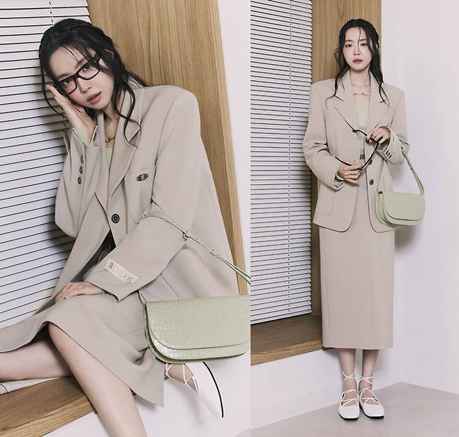 'JJ지고트'의 파워우먼 스커트 투피스룩은 여성스러움을 놓치지 않으면서도 시크함이 더해진 특유의 지적인 매력을 발산한다.