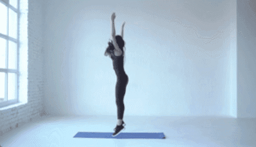 바닥에 서서 준비 자세를 취합니다. 손을 바닥에 짚고 엎드리며 플랭크 자세를 만듭니다. 발을 차례로 당겨 몸을 다시 서는 자세로 돌립니다. 원래 자세로 돌아오면서 점프 동작을 추가하고, 점프 시 손을 머리 위로 올려 손바닥을 붙입니다.