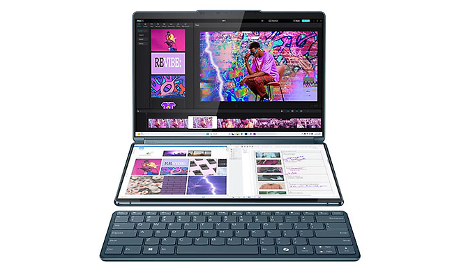 요가 북은 2-in-1 하이브리드 콘셉트로 마감된 제품군이다. 2024년 출시된 요가 북 9i의 경우 13.3인치 풀사이즈 OLED 디스플레이 두 개를 연결해 다양한 모습으로 변경해 사용할 수 있다. 이 두 디스플레이를 180도 돌아가는 힌지로 연결해 노트북과 태블릿 모드 전환이 가능하며 그에 따른 무선 키보드와 스타일러스 펜이 기본 포함된다. 덕분에 가격이 동일 내부 스펙인 요가 프로나 슬림 라인업 제품보다 거의 두 배 수준으로 올라간다. 다른 스펙에 비해 주사율이 떨어지는 건 사실이지만, 게이밍 콘셉트 제품이 아니기 때문에 충분히 수긍할 수 있다.