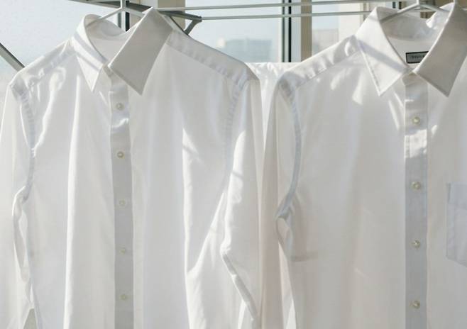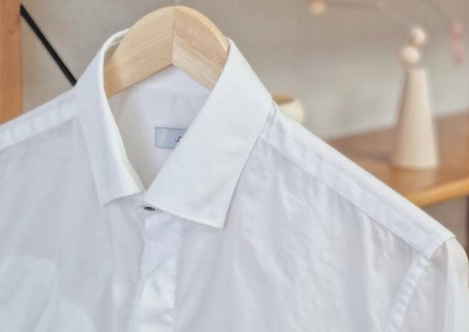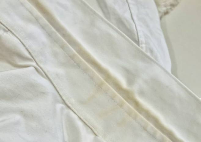 흰 셔츠 목 부분의 누런 얼룩은 땀과 피지가 섬유에 쌓여 생기는 황변 현상으로, 일반 세탁만으로는 잘 지워지지 않는다.