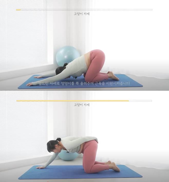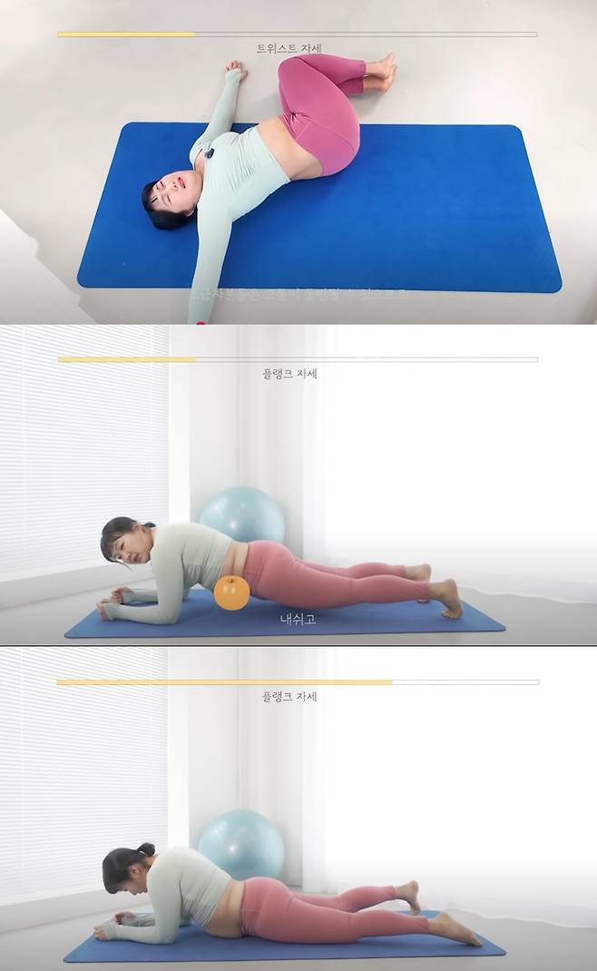 다음으로는 '트위스트 자세'를 하며 힘겨운 듯 인상을 찌푸리기도 했다.